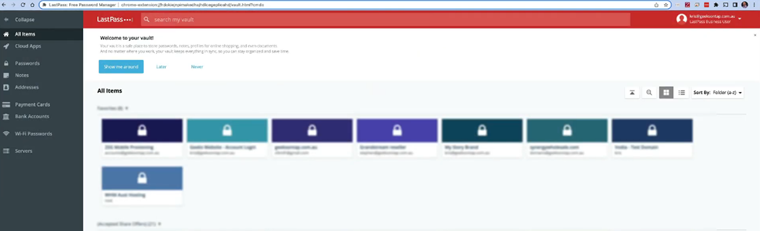 You’ll be redirected to your LastPass Vault, your central dashboard for storing:
