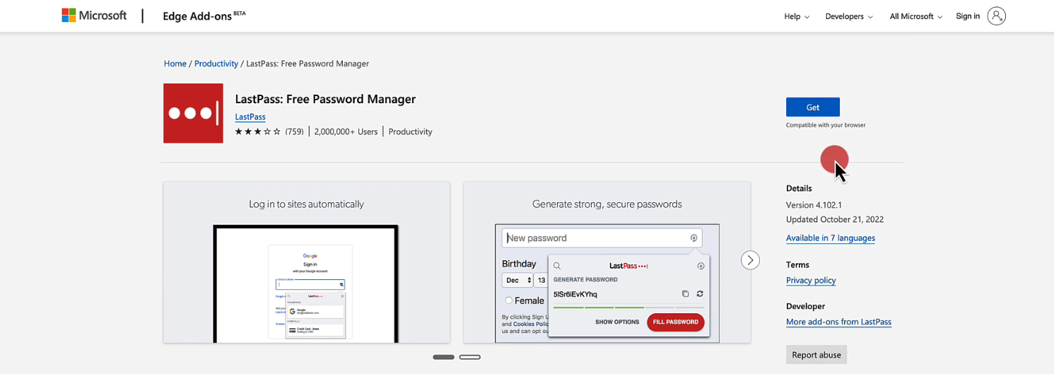 You will be directed to "Edge Add-ons" page. While you are on it, click on "Get"