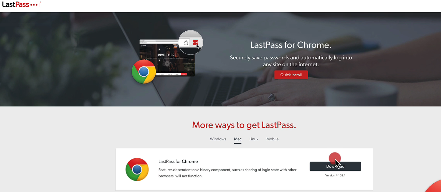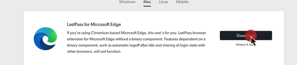Click the download button next to the browser you'd like to install the Lastpass extension on.